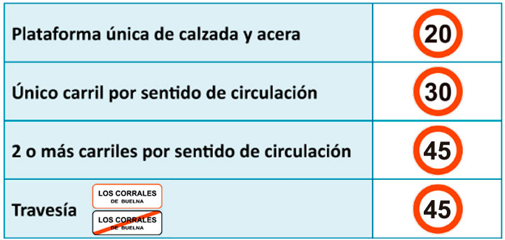Mediante señalización, estos límites podrán ser rebajados en vías urbanas y travesías; o, ampliados en las travesías, sin rebasar en ningún caso los límites genéricos establecidos para dichas vías fuera de poblado.