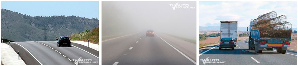 - Condiciones meteorológicas o ambientales adversas (niebla densa, lluvia intensa, fuerte nevada…) que reducen la visibilidad.