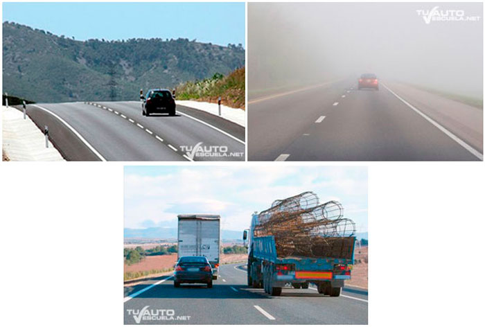 - Tener espacio suficiente para poder acelerar y alcanzar una velocidad notoriamente superior a la del vehículo que se pretende adelantar.