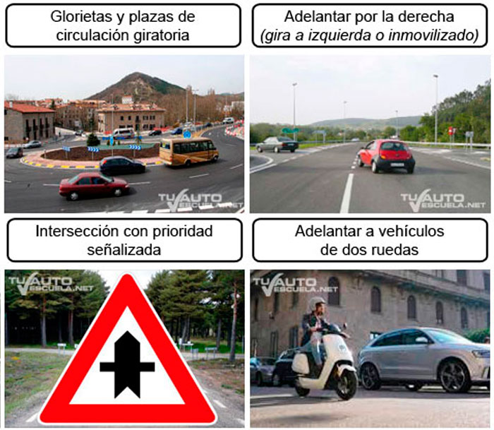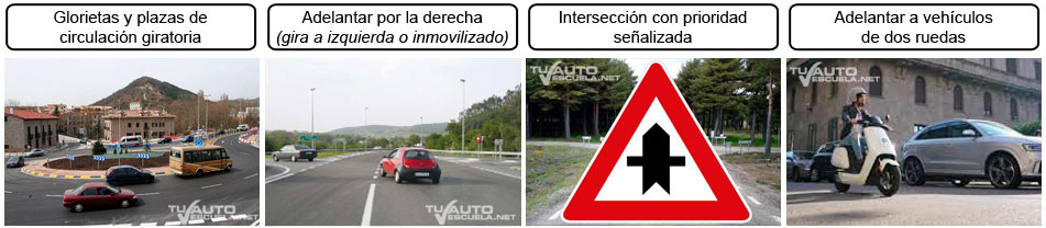 - Adelantar por la derecha (cuando el vehículo adelantado indique claramente su intención de girar o inmovilizarse a la izquierda).