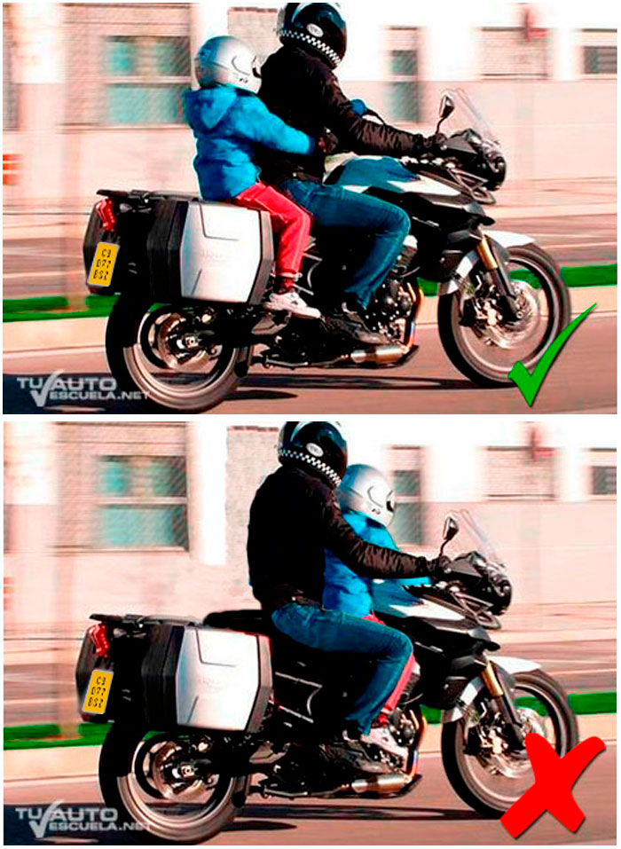 - Que esté sentado a horcajadas, con los pies apoyados en los reposapiés.