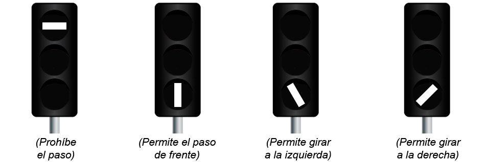 Afectan exclusivamente a los tranvías y a los autobuses de líneas regulares, a no ser que exista un carril reservado para autobuses o para autobuses, taxis y otros vehículos; en tal caso, afectan a todos los que circulen por él. El significado de estos semáforos es el siguiente: