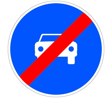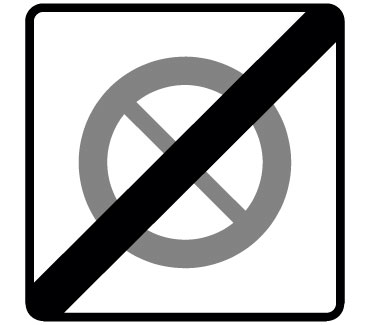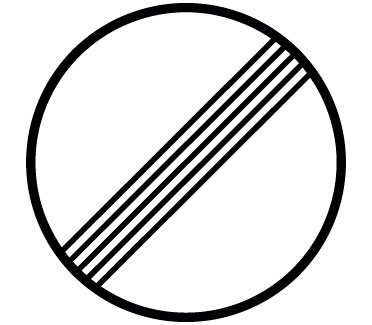 Fin de prohibiciones (R-500) Señala el lugar desde el que todas las prohibiciones específicas indicadas por anteriores señales de prohibición para vehículos en movimiento, dejan de tener aplicación.