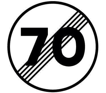 Fin de limitación de velocidad (R-501) Señala el lugar desde donde deja de ser aplicable una anterior señal de «Velocidad máxima».