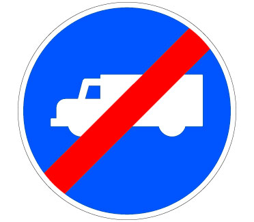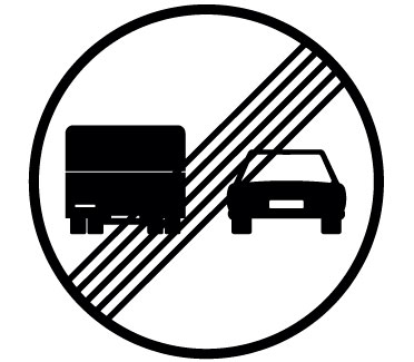 Fin de la prohibición de adelantamiento para camiones (R-503) Señala el lugar desde donde deja de ser aplicable una anterior señal de «Adelantamiento prohibido para camiones».