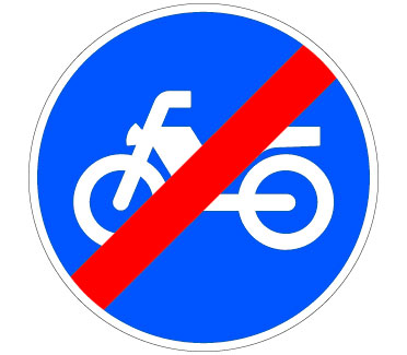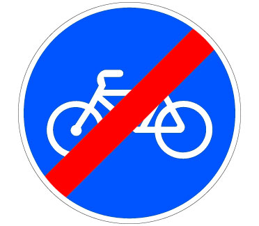 Fin de vía reservada para ciclos (R-505) Señala el lugar desde donde deja de ser aplicable una anterior señal de «Vía reservada para ciclos».
