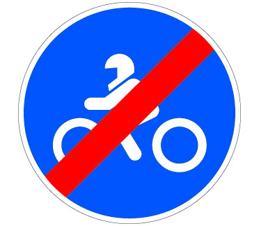 Fin de calzada obligatoria para motocicletas de dos ruedas (R-508) Señala el lugar desde donde deja de ser aplicable una señal anterior de calzada obligatoria para motocicletas de dos ruedas y vehículos de tres ruedas asimilados a motocicletas.