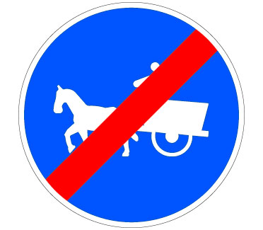 Fin de camino obligatorio para vehículos de tracción animal (R-511) Señala el lugar desde donde deja de ser aplicable una señal anterior de camino obligatorio para vehículos de tracción animal.