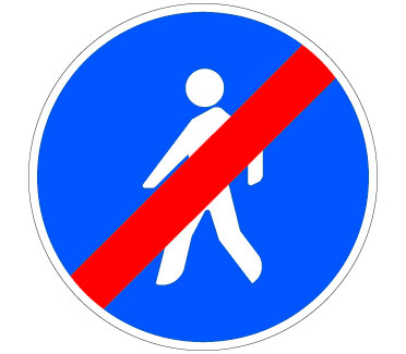 Fin de camino reservado y obligatorio para peatones (R-513) Señala el lugar desde donde deja de ser aplicable una señal anterior de camino reservado y obligatorio para peatones.