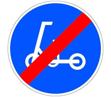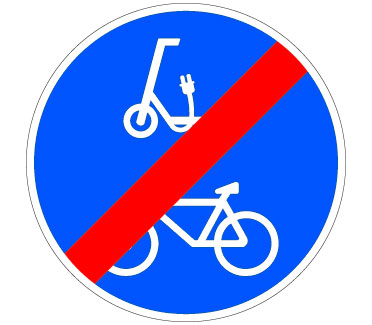 Fin de vía reservada y obligatoria para vehículos de movilidad personal (R-515) Señala el lugar desde donde deja de ser aplicable una señal anterior de vía reservada y obligatoria para vehículos de movilidad personal.