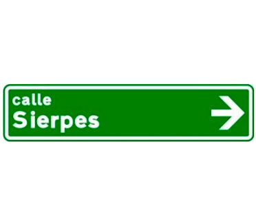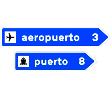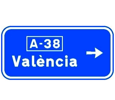 Indica, en una carretera convencional o una carretera multicarril, la dirección propia de la carretera por la que se circula y los destinos de las salidas del próximo nudo cuando estas dirigen hacia una autopista o una autovía.