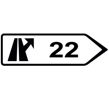 Indica el lugar de salida de una autopista o una autovía hacia una autopista o una autovía. La cifra indica el número del enlace, que se corresponde con el punto kilométrico de la carretera.