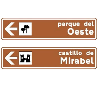 Indica las carreteras que no sean autopistas o autovías, los poblados a los que por ellas pueda accederse, así como otros lugares de interés público no comprendidos en las señales S-700 a S-760.