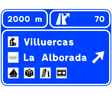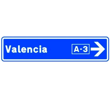 Indica, en una autopista o una autovía, la dirección propia de la carretera por la que se circula y los destinos de la salida del próximo enlace. También indica la distancia a dicha salida, su número y, en su caso, la letra.