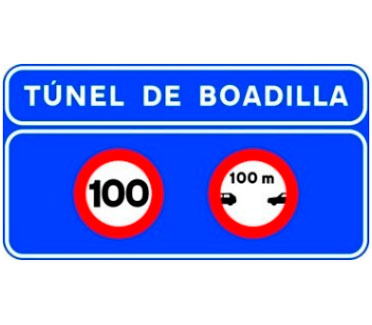 Indica la localización de un túnel en una autopista o una autovía incluyendo la información sobre las obligaciones específicas de circulación dentro del mismo.