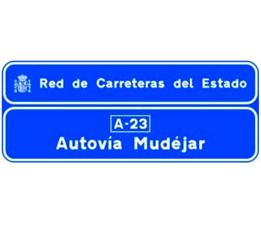 Señal indicativa de la titularidad, numeración y denominación de la autopista o la autovía a la que se accede. Si la autopista o la autovía no tienen denominación, el cartel contendrá el texto “Autopista” o “Autovía” seguido del cajetín identificativo.
