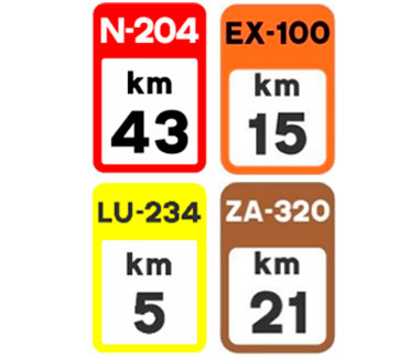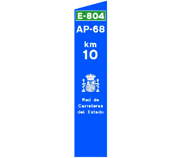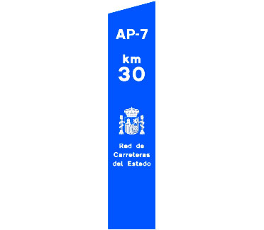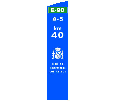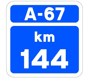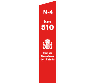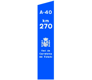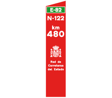 Indica el punto kilométrico de una carretera convencional cuya identificación aparece en la parte superior sobre el fondo de color que corresponda a la red de carreteras a la que pertenezca.