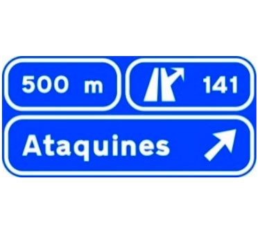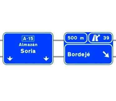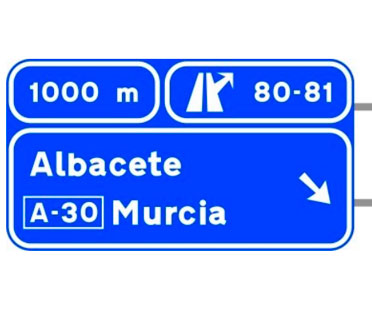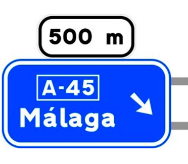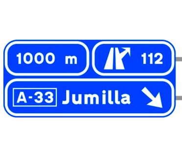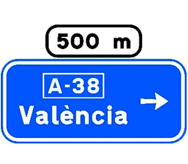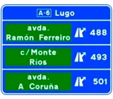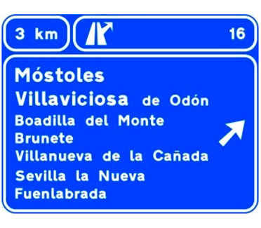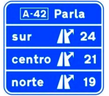 Indica, en una autopista o una autovía, los destinos de la salida del próximo enlace. También indica la distancia a dicha salida, su número y, en su caso, la letra.