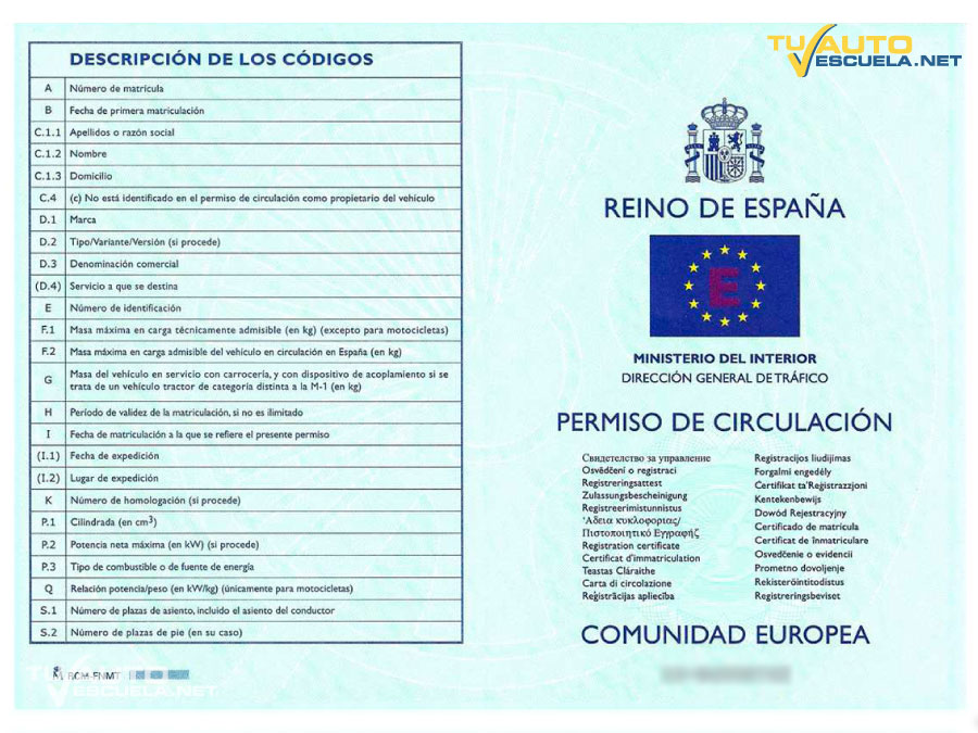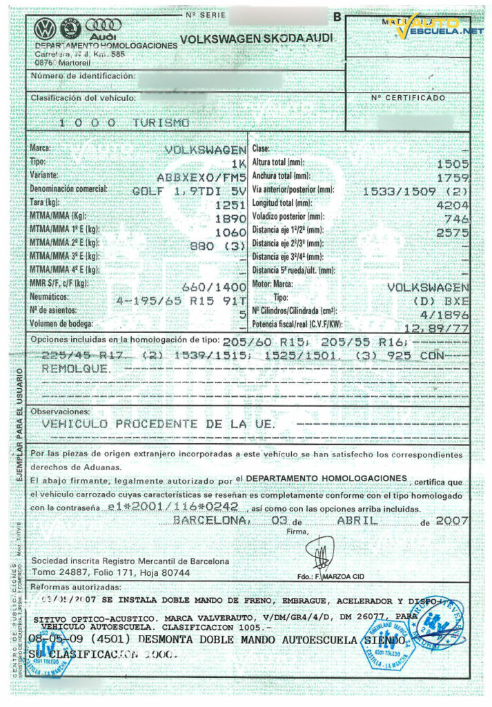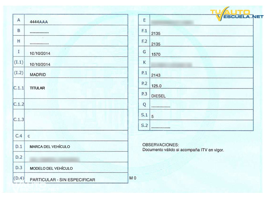 En él figuran, entre otros datos identificativos del vehículo: matrícula, fecha de matriculación, nombre y domicilio del titular, marca, modelo, MMA, número de plazas…